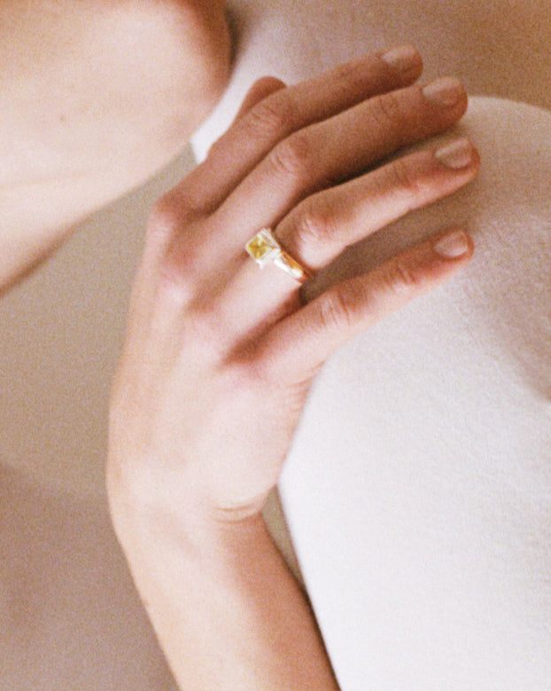 Bague Cocktail Pilier en quartz citron