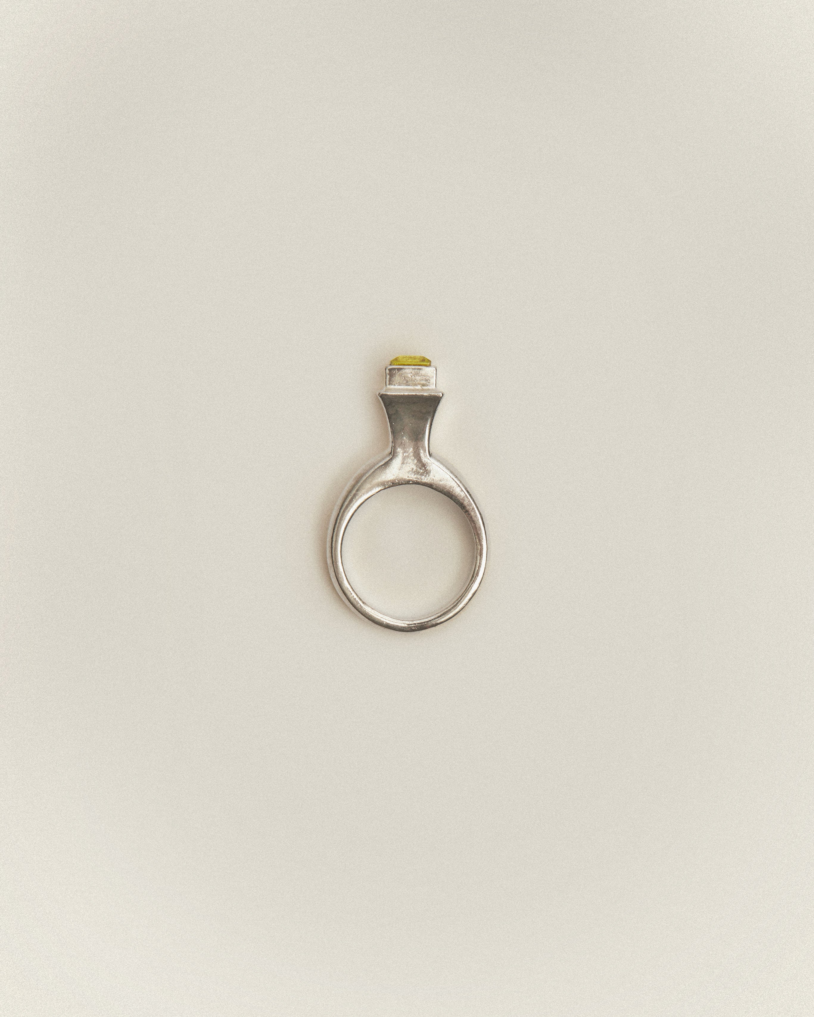 Bague Cocktail Pilier en quatz citron et argent massif.