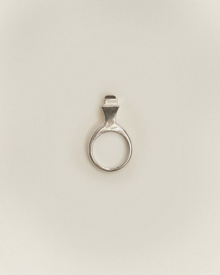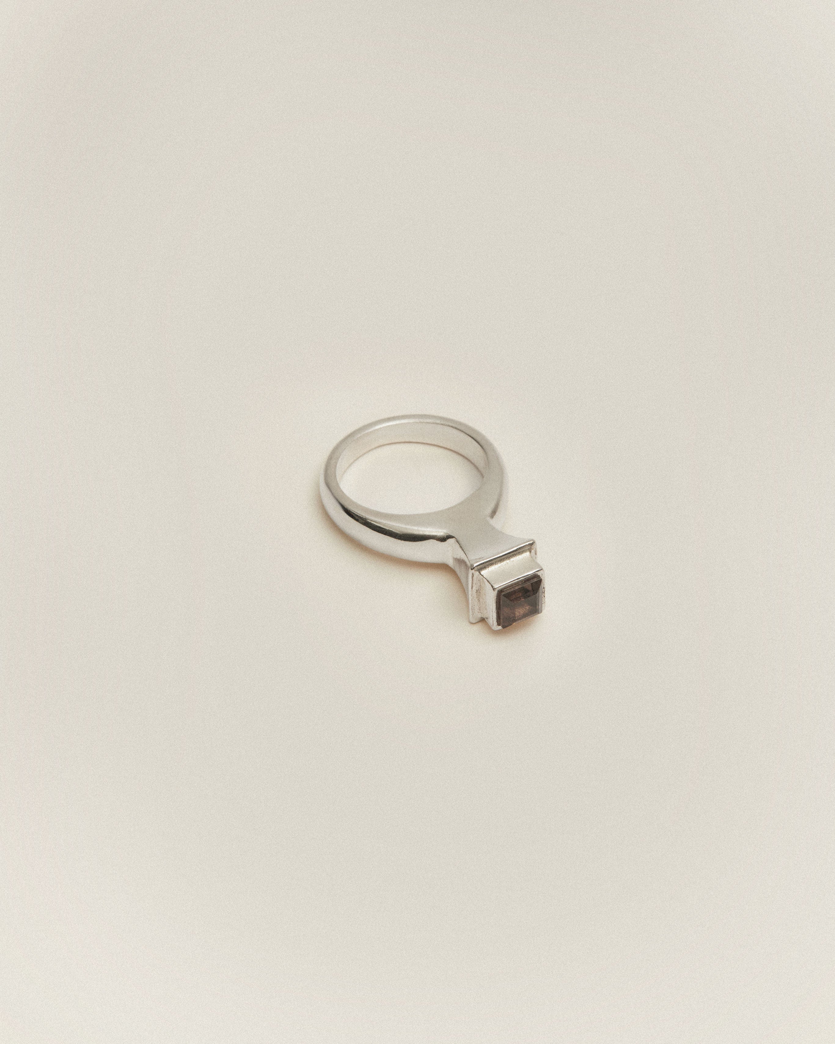 Bague Cocktail Pilier en quatz fumé et argent massif.