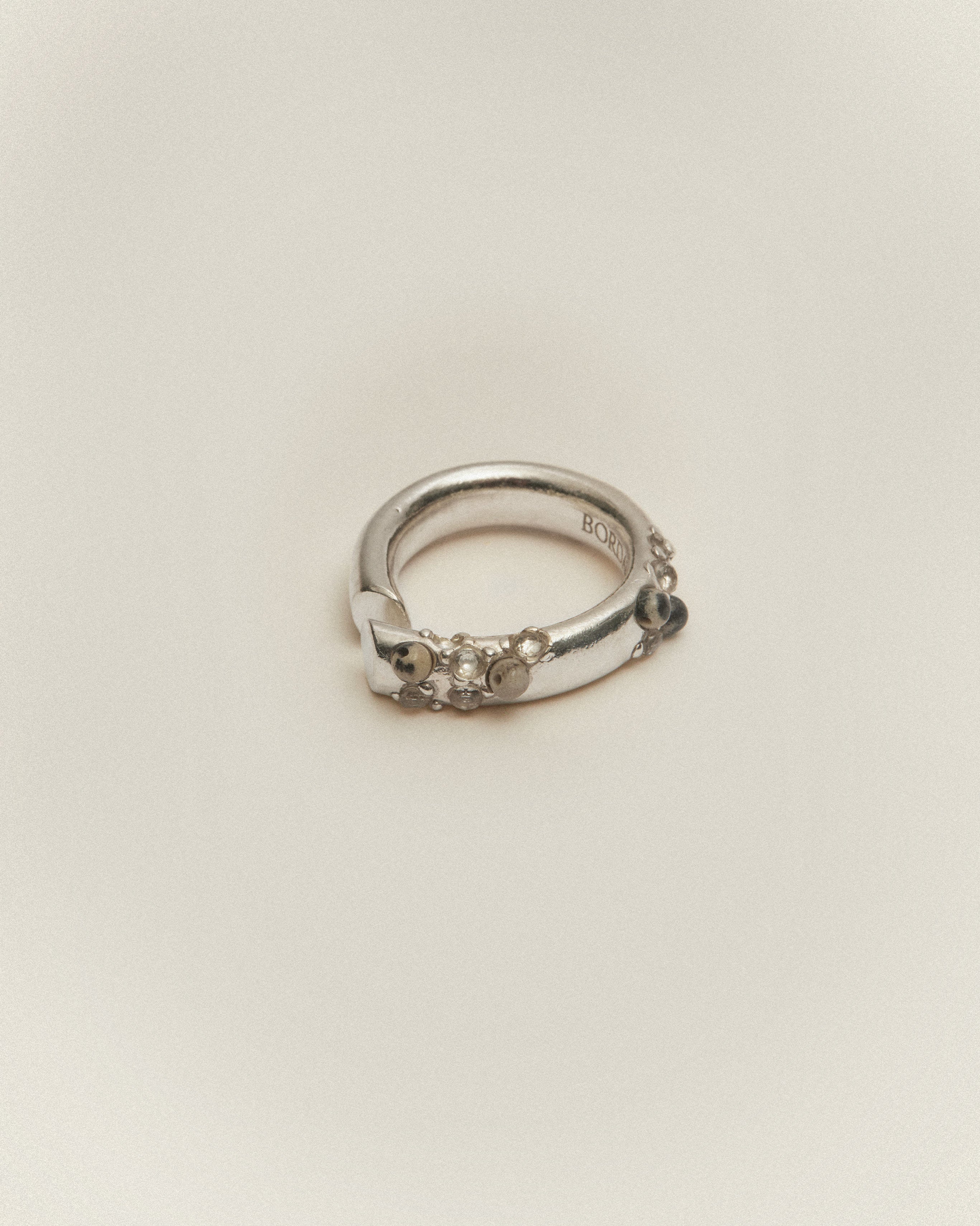 Moderniste et opulente avec son accumulation de topazes blanches et de jaspes dalmatiens.