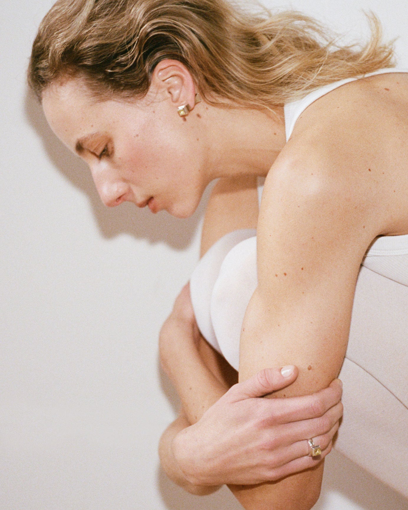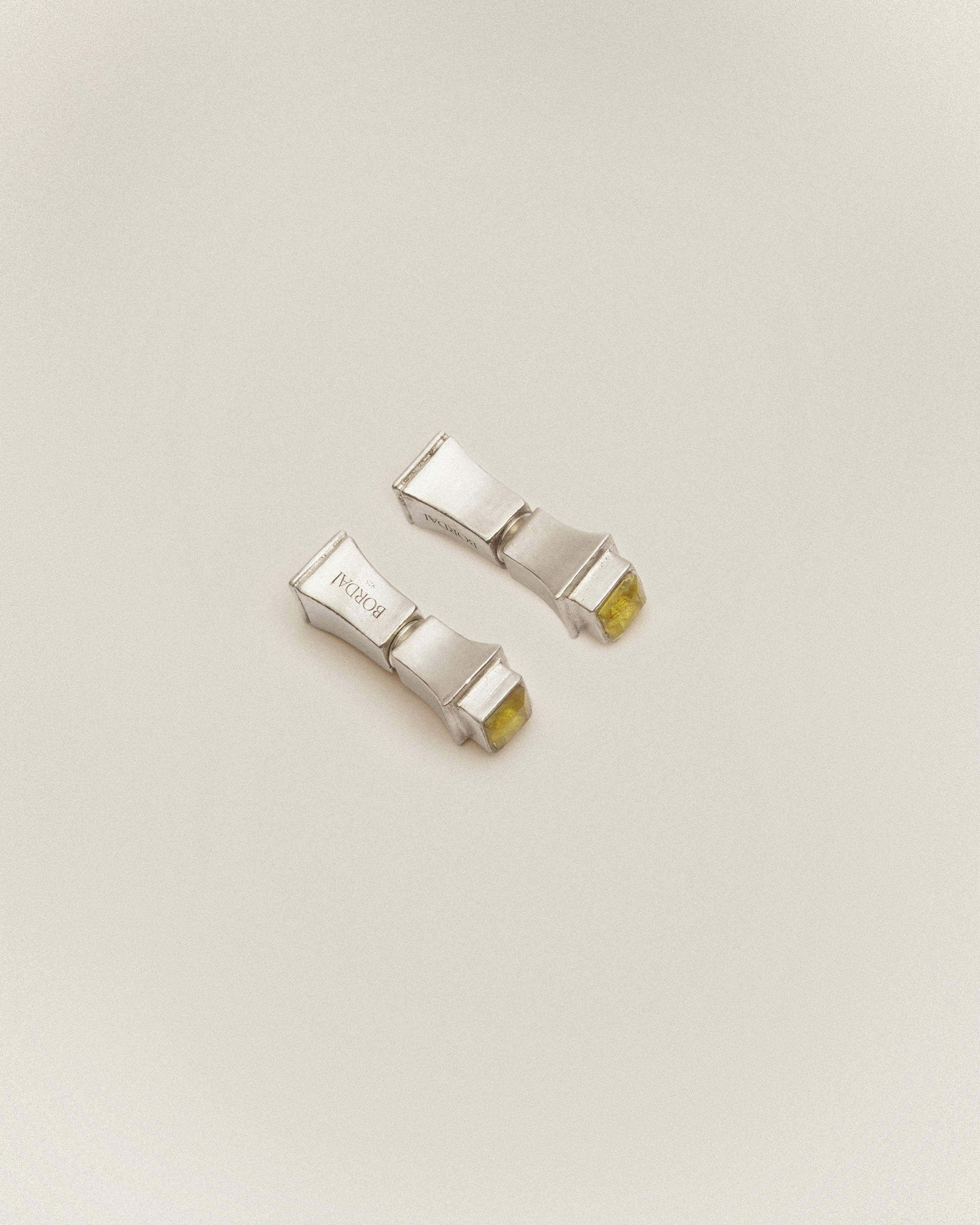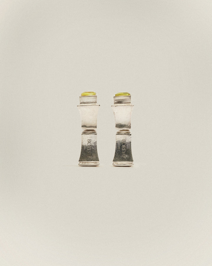Double boucle d’oreille Pilier, en argent massif et quartz citron.
